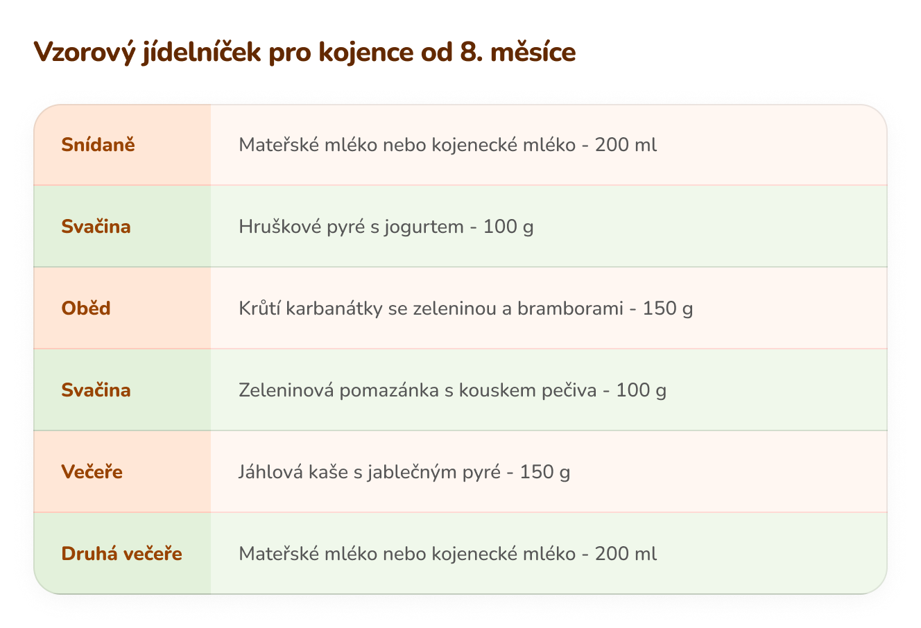 Jídelníček kojence od 7. do ukončeného 8. měsíce