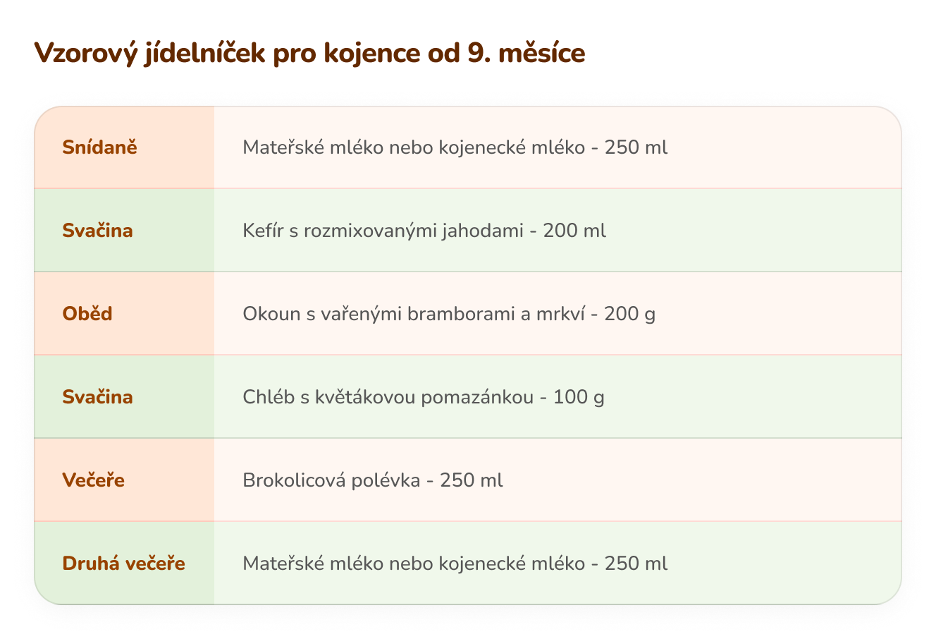 Jídelníček kojence od 9. do ukončeného 10. měsíce