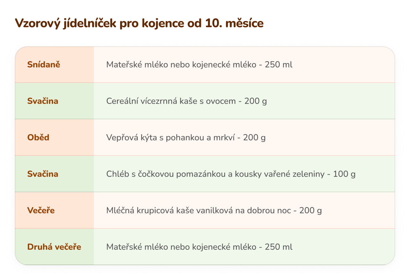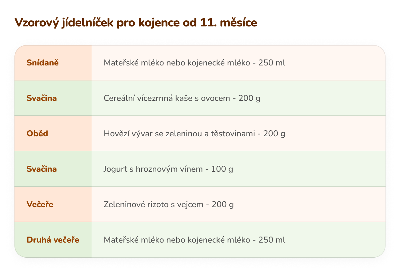 Jídelníček kojence od 11. do ukončeného 12. měsíce